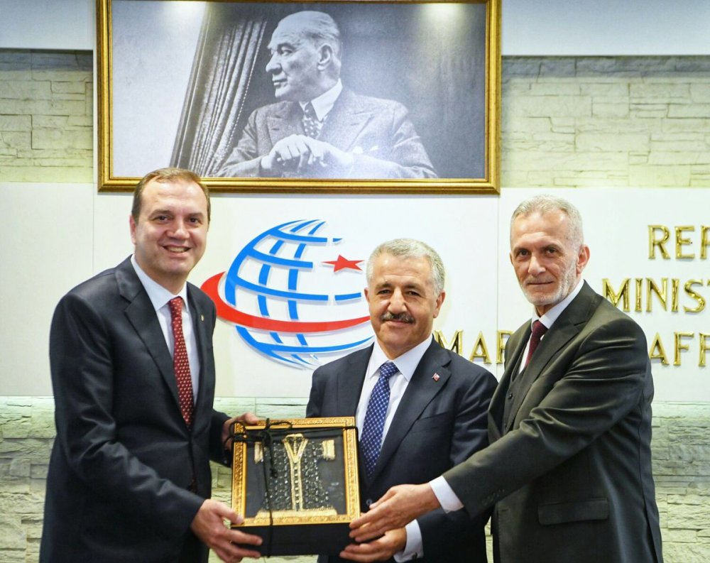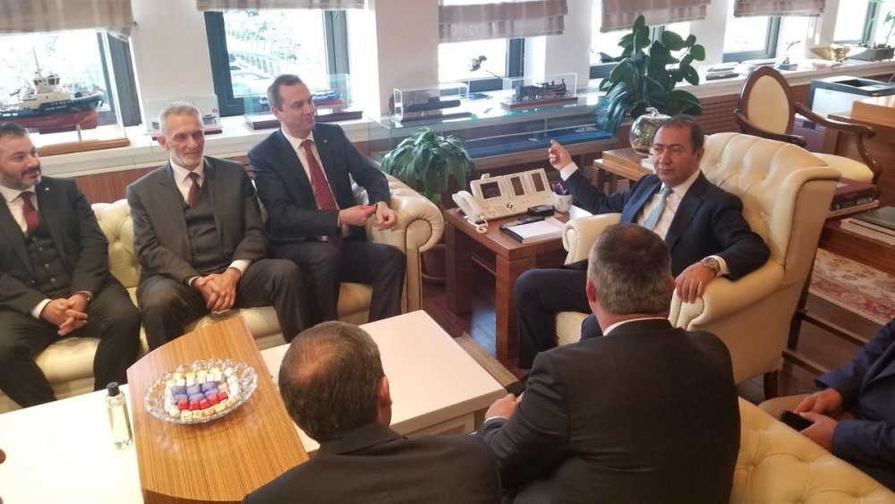Bakan Arslan, Deniz Ticareti Odası (İMEAK DTO) Yönetim Kurulu Başkanı Tamer Kıran ve heyetini kabul etti.