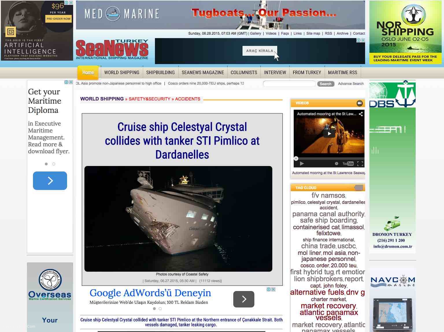 Türk Denizciliğinin dünyaya açılan penceresi olan SeaNews Turkey, dün meydana gelen Celestyal Crystal-STI Pimlico kazasıyla ilgili referans sitesi oldu.