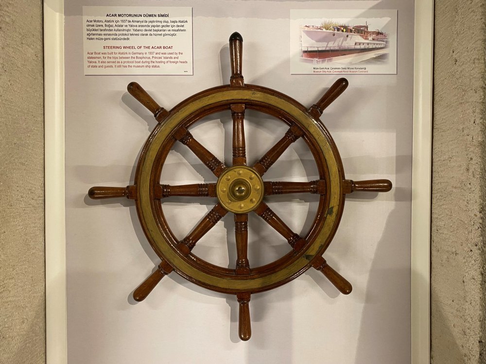 En yeni obje: Atatürk bölümünde sergilenen ve Acar Vapuru’ndan alınmış olan gemi dümeni. Acar Motoru, Atatürk için 1937’de Almanya’da yaptırıldı. Başta Atatürk olmak üzere, Boğaz, Adalar ve Yalova arasında yapılan geziler için devlet büyükleri tarafından kullanıldı. Yabancı devlet başkanları ve misafirlerin ağırlanması esnasında protokol teknesi olarak da hizmet verdi.