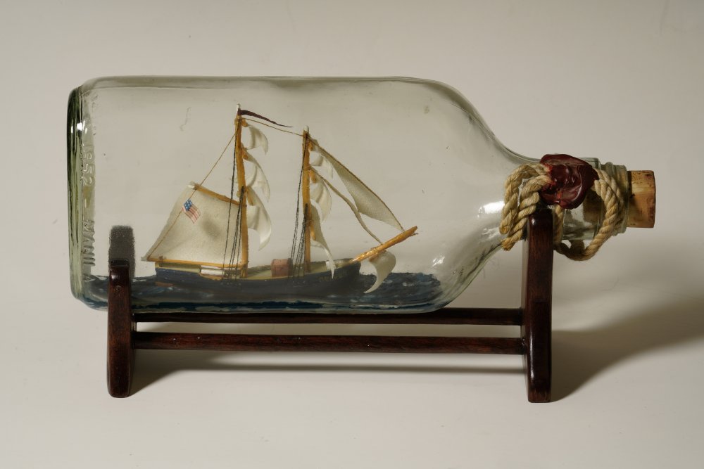 En hafif obje: Müze koleksiyonunda yer alan cam şişede küçük gemi modelleri. 1860’lardan itibaren üretilmeye başlayan cam şişelerin içine yerleştirilen küçük gemi modelleri, deniz insanları için önemli bir hobiye dönüştü.