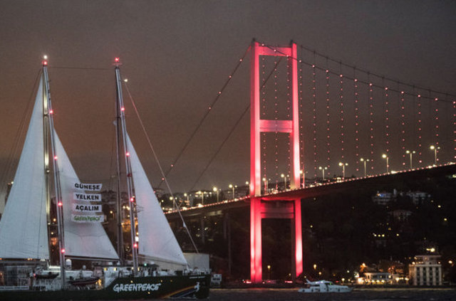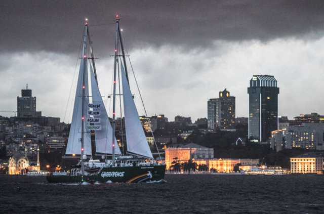 Greenpeace'in efsane gemisi Rainbow Warrior İstanbul boğazından geçti