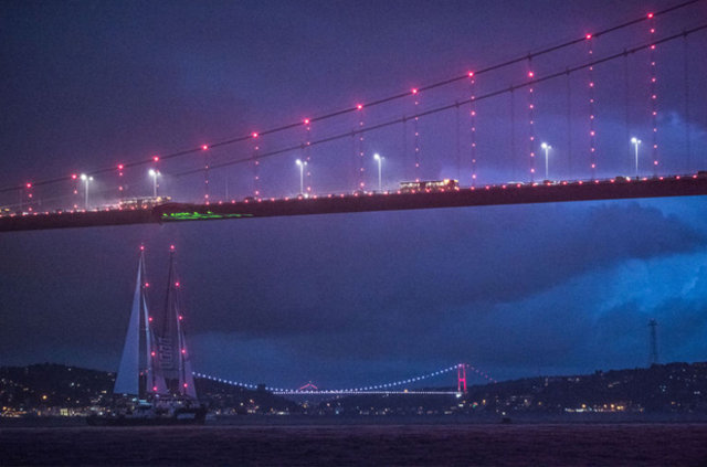 Efsane gemi Rainbow Worrior boğazdan böyle geçti