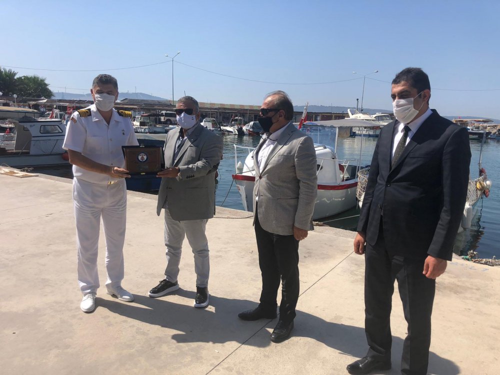 Sahil Güvenlik Ege Deniz Bölge Komutanı Albay Tezel, İMEAK Deniz Ticaret Odası tarafından bölge komutanlığına yapılan araç hibesi için hazırlanan teşekkür plaketini İMEAK Deniz Ticaret Odası Aliağa Şubesi Yönetim Kurulu Başkanı Adem Şimşek takdim etti. Plaket takdimine Aliağa Kaymakamı Ömer Karaman ve Aliağa Başsavcısı Hikmet Salman’da katıldı.