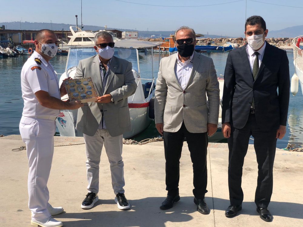 İMEAK Deniz Ticaret Odası Aliağa Şubesi Yönetim Kurulu Başkanı Adem Şimşek ve Yönetim Kurulunca karşılanan Bölge Komutanı Kıdemli Albay Serkan Tezel ile birlikte Sahil Güvenlik Ege Bölge Grup Komutanı Binbaşı Sadun Özdemir ve TCDG-61 Sahil Güvenlik Bot Komutanı Yüzbaşı Özgür Acar ziyarete eşlik ettiler.