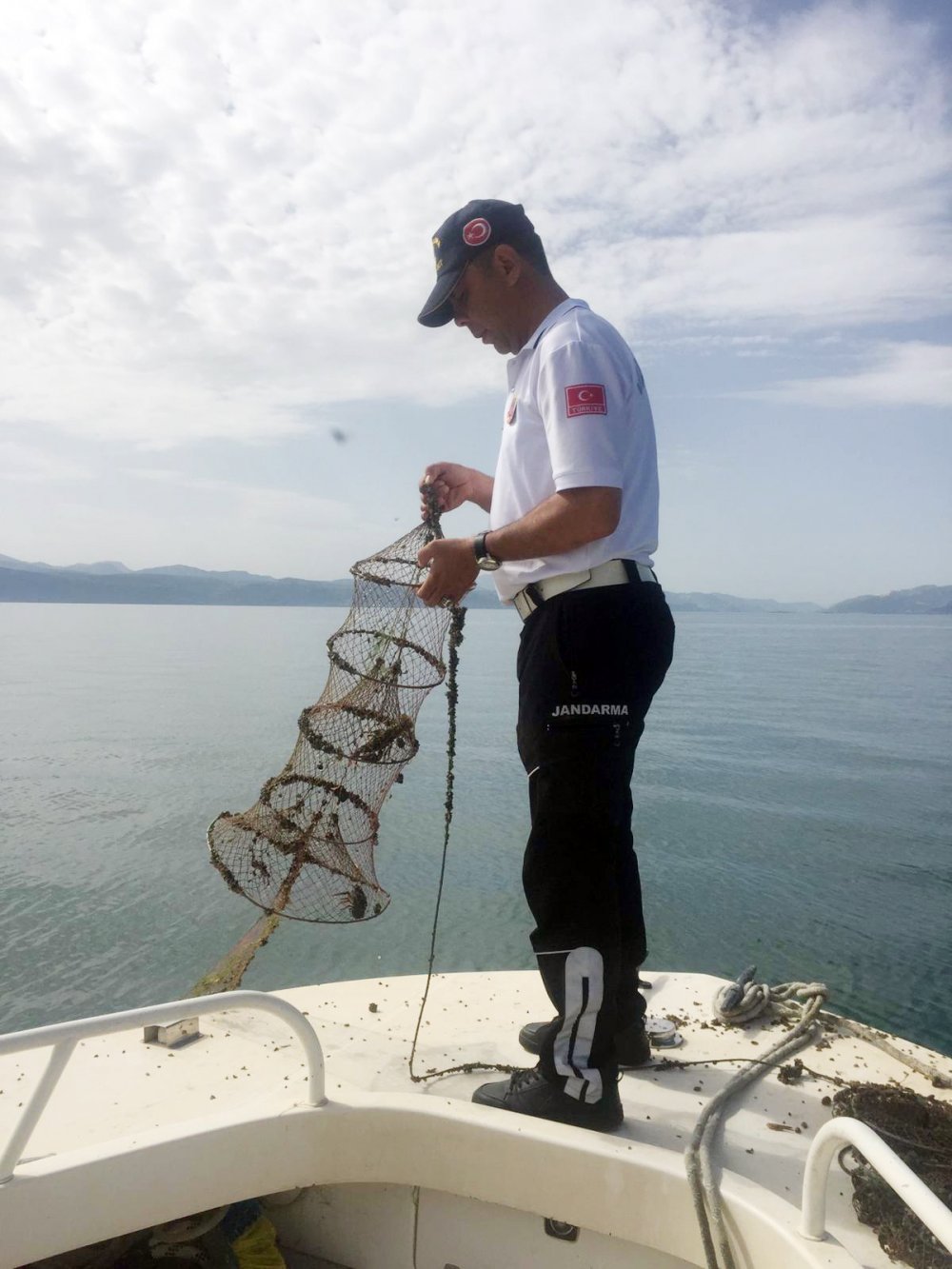 Isparta’da jandarma ekiplerinin kaçak avlananlara karşı Eğirdir Gölü’nde yaptığı denetimlerde, göle atılı vaziyette 150 metre misina ağ ile 300 adet kaçak kerevit sepeti ele geçirildi.