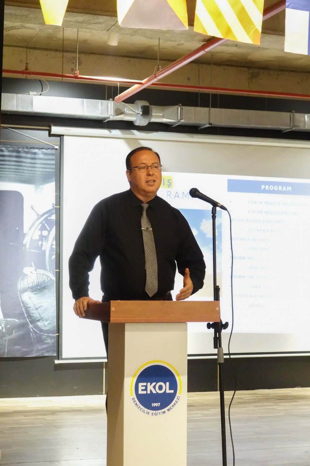 ‘’Ekol Denizcilik Eğitim Merkezi’ndeki yeni eğitim yılına hoş geldiniz. Yeni bir eğitim ve öğretim görevine başladığımız bugünde genç arkadaşlarıma seslenmek istiyorum. Bu dönemimizde 2 güverte ve bir makine sınıfı olmak üzere su anda kadar 73 adet arkadaşımız okulumuza kayıt yaptırmış bulunmaktadır. Bu maksatla 2 adet güverte ve 1 adet makine sınıfı oluşturduk ve bu sınıflarımız sizler için hazırlanmış olan bölgede hizmete başlamıştır.