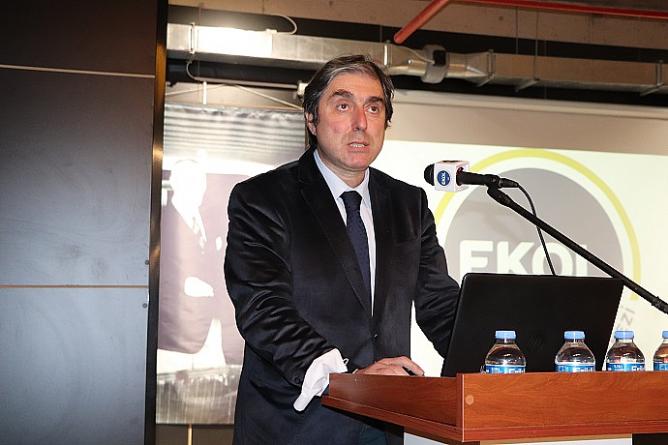 Kaya’nın ardından İngilizce Bölüm Başkanı Cesur Elçi söz aldı. Dünya ticaretinin büyük bir kısmının su yolları üzerinden yapıldığını ve bu nedenle İngilizcenin ‘hayati’ önemde olduğunu vurgulayan Elçi, “İngilizce artık bir var olmak ve olmamak seçimi olmuştur. Başka hiçbir meslekte İngilizce yetkinliği bu kadar önemli değil. Gerek gemi için, gerekse çok uluslu mürettebatla çalışma ortamında, gerekse de ücra noktasında tüm yazışma ve iletişim ve ilave olarak resmi tüm yayınlar İngilizcedir. İnsan kaynaklı kaza kırımların iletişim bölümündeki çok büyük noksanlık İngilizce yetkinsizlik. Bu durumun yüksek farkındalığıyla çıktığımız bu yolda, sektördeki haklı ünvanını pekiştirecek ve sektöre ilave değer katacak bir anlayışla karşınızdayız EKOL olarak” dedi.