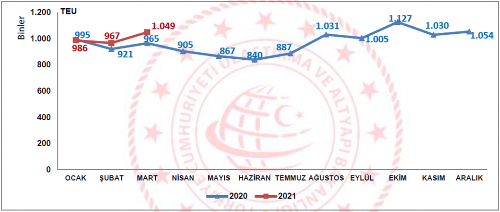 Ulaştırma ve Altyapı Bakanlığı Denizcilik Genel Müdürlüğü tarafından bu yılın mart ayına ilişkin konteyner ve yük istatistikleri yayımlandı.