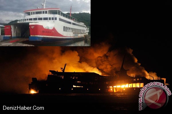 Endonezya'da Gelis Rauh adlı feribot yandı, battı, 73 kişi kurtarıldı.