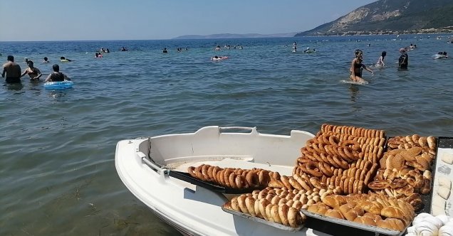 Erdek ilçesinde sahilde kıyıları dolaşarak tatil yapan vatandaşlara yüzen pastanesi ile hizmet veren Cemil Kaya, eÅŸya depolama, ilgiden memnun olduğunu ve bu mesleği çocukluğundan beri yaptığını söyledi.