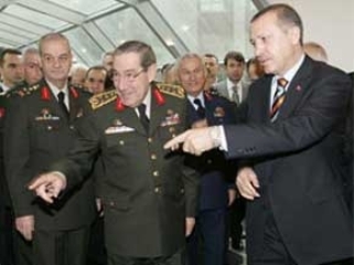 Erdoğan, AR-GE binasının kurdelesini Devlet Bakanı Aydın, Orgeneral Büyükanıt ve Orgeneral Başbuğ ile birlikte kesti.