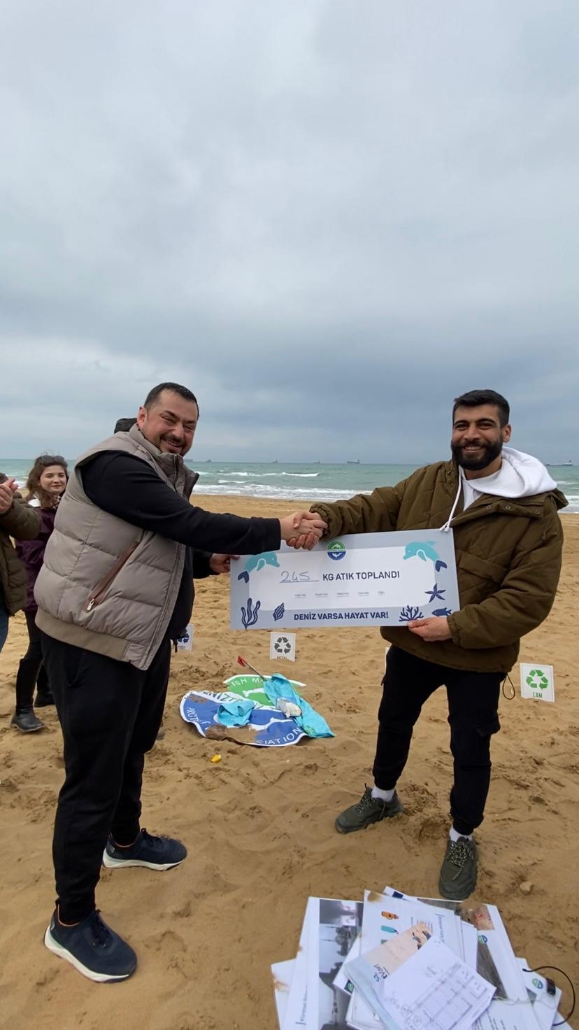 Yaklaşan yaz mevsimi nedeniyle deniz kirliliğine dikkat çekmek, denizlerin ve sahillerin temizliği konusunda çevre duyarlılığı oluşturmak amacıyla sahilde temizlik yapan gönüllüler, 1 saat içinde plastik, kâğıt, cam şişe, gıda ambalajları vb. atıklardan oluşan 245 kilo çöp topladı.
