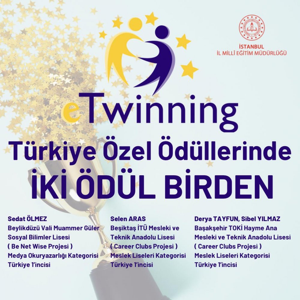 İTU MTAL ortaklığında yapılan "Career Clubs" projesi, eTwinning projeleri ‘Meslek Liseleri’ Kategorisi Türkiye Özel Ödülünü almaya layık görüldü. Projenin kurucuları Burcu Sönmez ve Eda Acar Antalya da 1-3 Mart 2022 tarihleri arasında gerçekleşen eTwinning 12. Ulusal Konferansında tüm ortaklar adına ödüllerini aldılar.