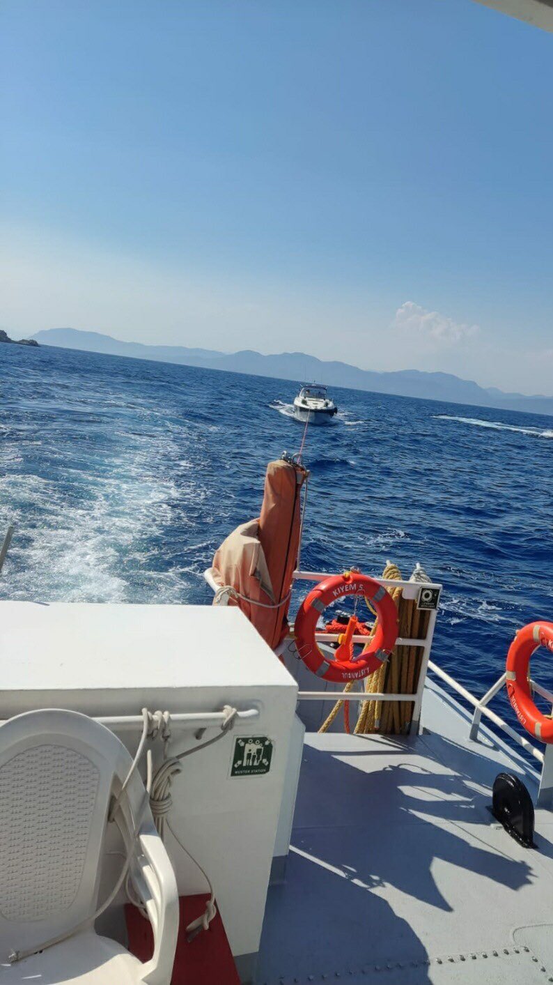 Seyir yapamayacak duruma gelen tekne, KIYEM-5 hızlı tahlisiye (can kurtarma) botumuzca yedeklenerek Göcek Marina’ya çekildi.