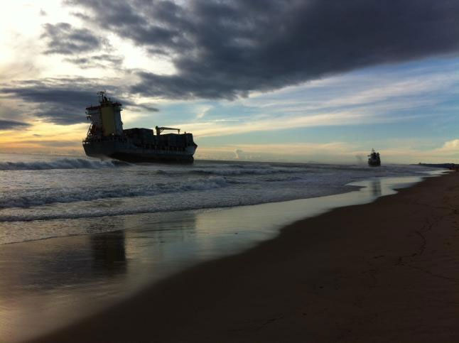 Şiddetli fırtına nedeniyle demir tarayan gemiler aynı kumsala doğru sürüklenerek karaya oturdular.