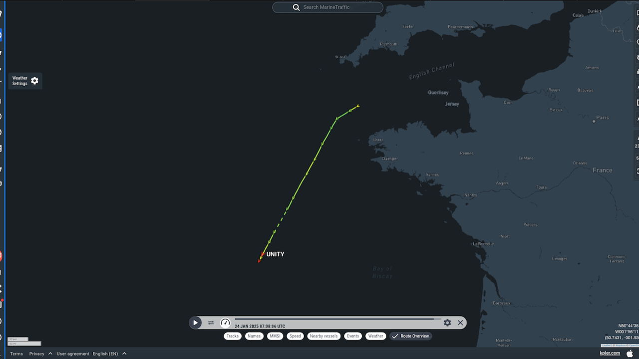 16 yaşındaki Aframax tipi tanker Unity, 16 Ocak'ta Primorsk'tan Hindistan'ın Mangalore şehrine gitmek üzere Rus petrolüyle yüklü olarak yola çıktı. Ancak Atlantik'teki şiddetli fırtına koşullarında batı Fransa açıklarında gece saatlerinde arızalandı ve sevk sistemi durdu.