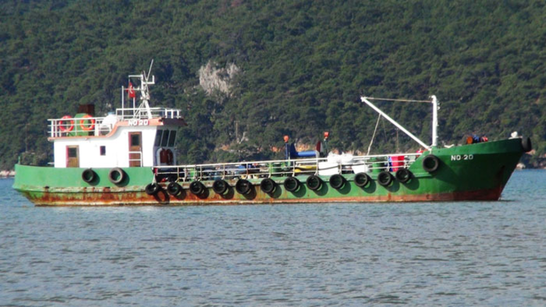 Muğla'nın Ula ilçesinde, Akyaka Limanı açıklarında demirli olan ve lodosun etkisiyle halatları kopan "NO.20" isimli atık toplama gemisi sürüklenmeye başladı.