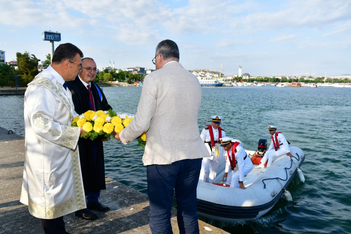 Ulaştırma ve Alt Yapı Bakan Yardımcısı Müh. Durmuş Ünüvar, İTÜ Rektörü Prof. Dr Hasan Mandal ve İTÜ Denizcilik Fakültesi Dekanı Prof. Dr. Özcan Aslan tarafından deniz şehitleri anısına denize çelenk bırakılmasının ardından mezuniyet törenine geçildi.