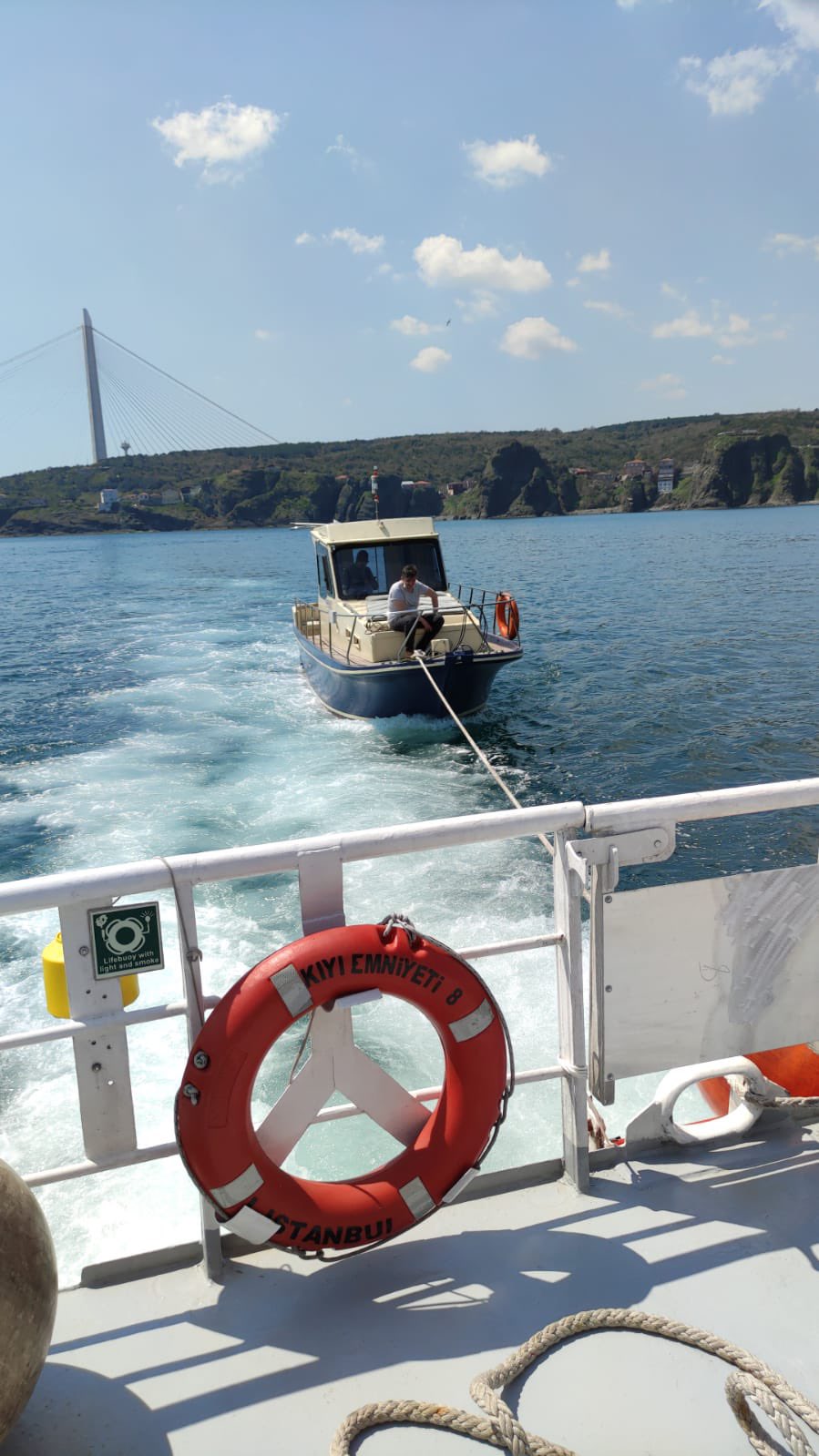 KIYEM 8 hızlı tahlisiye (can kurtarma) botu ile yedeklenerek çekilen teknenin Rumeli Balıkçı Barınağı’na bağlandığı açıklandı.