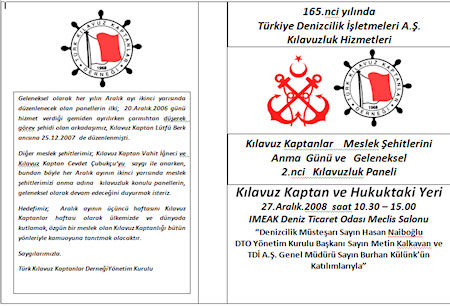 TDİ İstanbul Boğazı Kılavuz kaptanlarından Baba Lütfü olarak bilinen Lütfü Berk2in 20 Aralık 2006 tarihinde çarmıh kazasında hayatını kaybetmesinden sonra her yıl ölüm yıldönümünde kılavuzluk paneli düzenlenmesi gelenekselleştirildi.