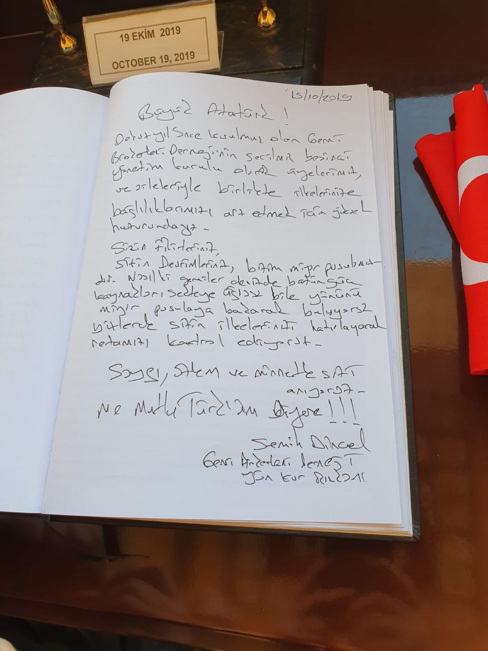 Saygı duruşu ve İstiklal Marşı’nın okunmasının ardından Misak-ı Milli Kulesi’ne geçen Başkan Dinçel, Anıtkabir Özel Defteri’ne şunları yazdı: