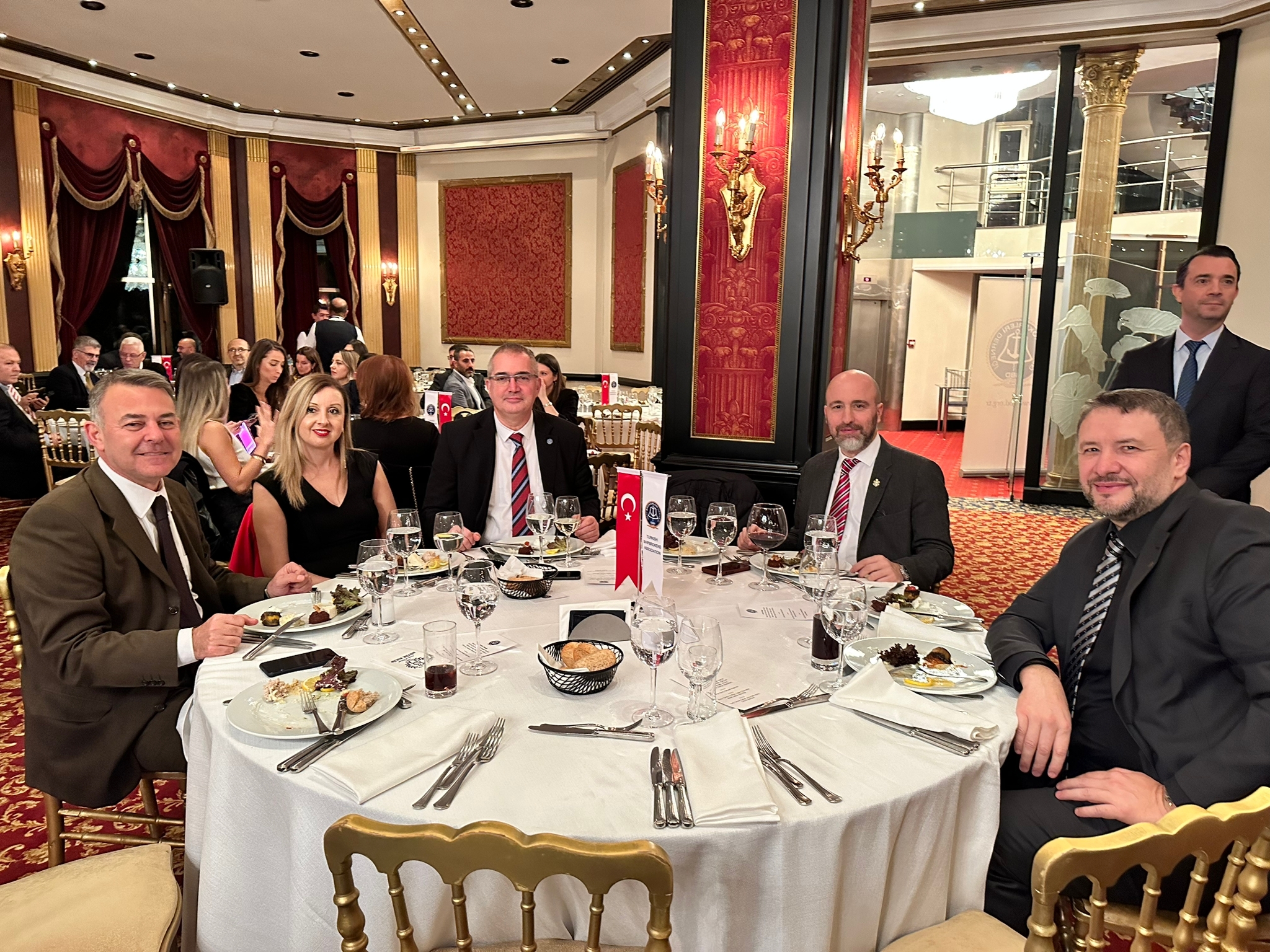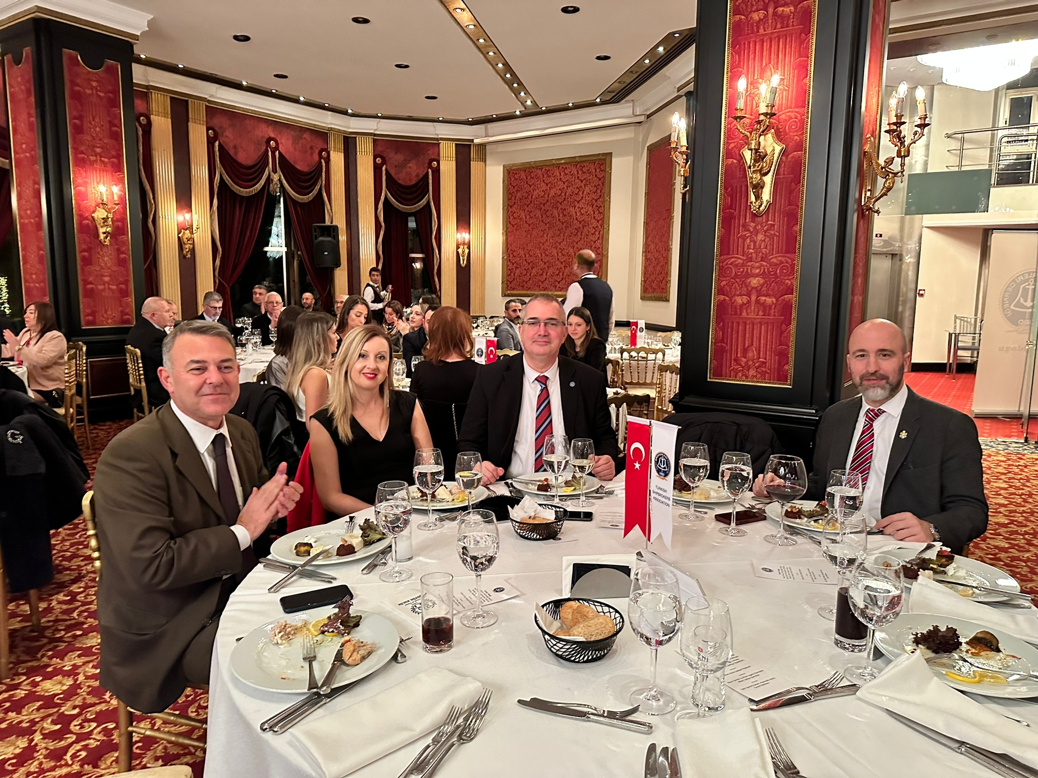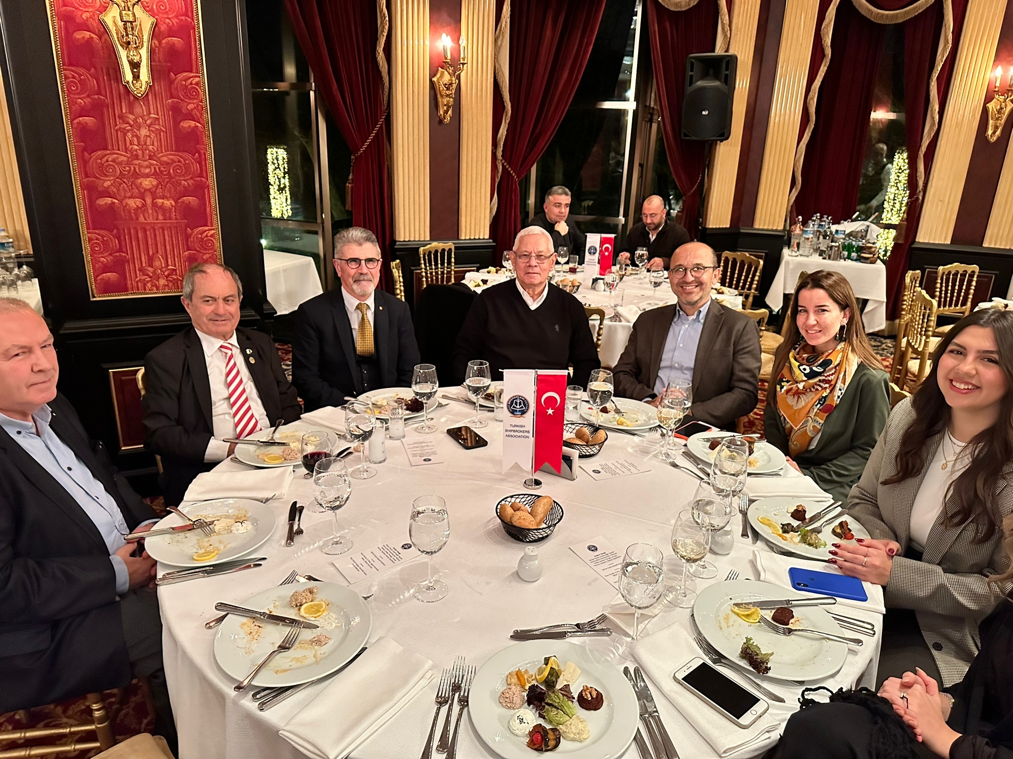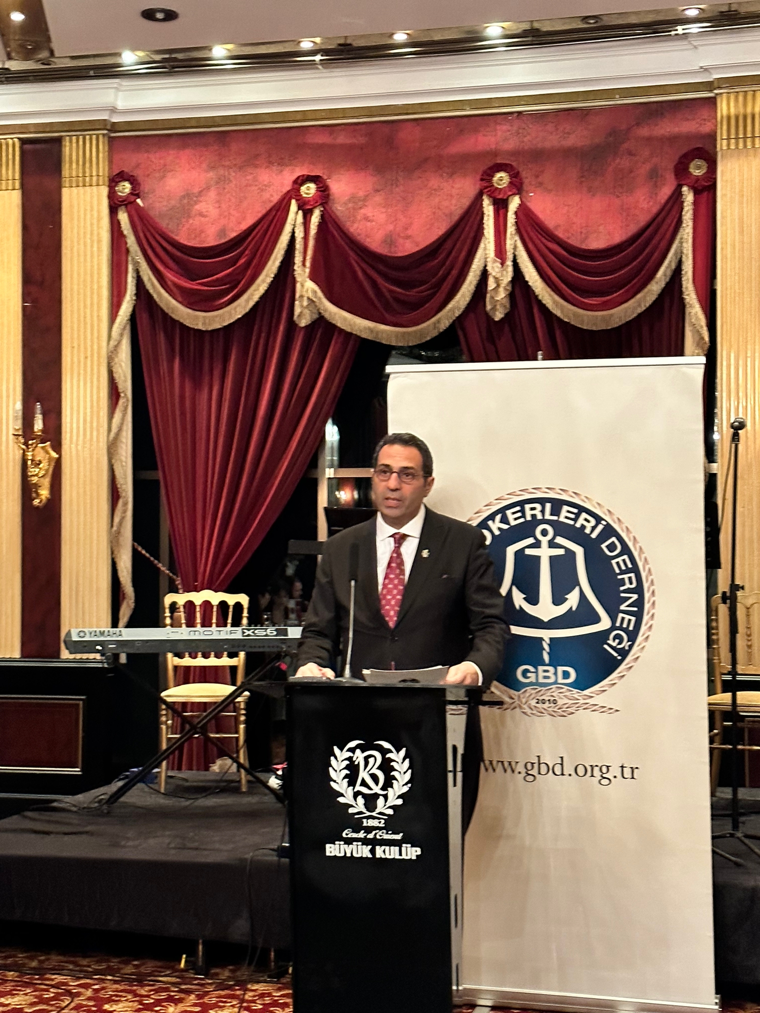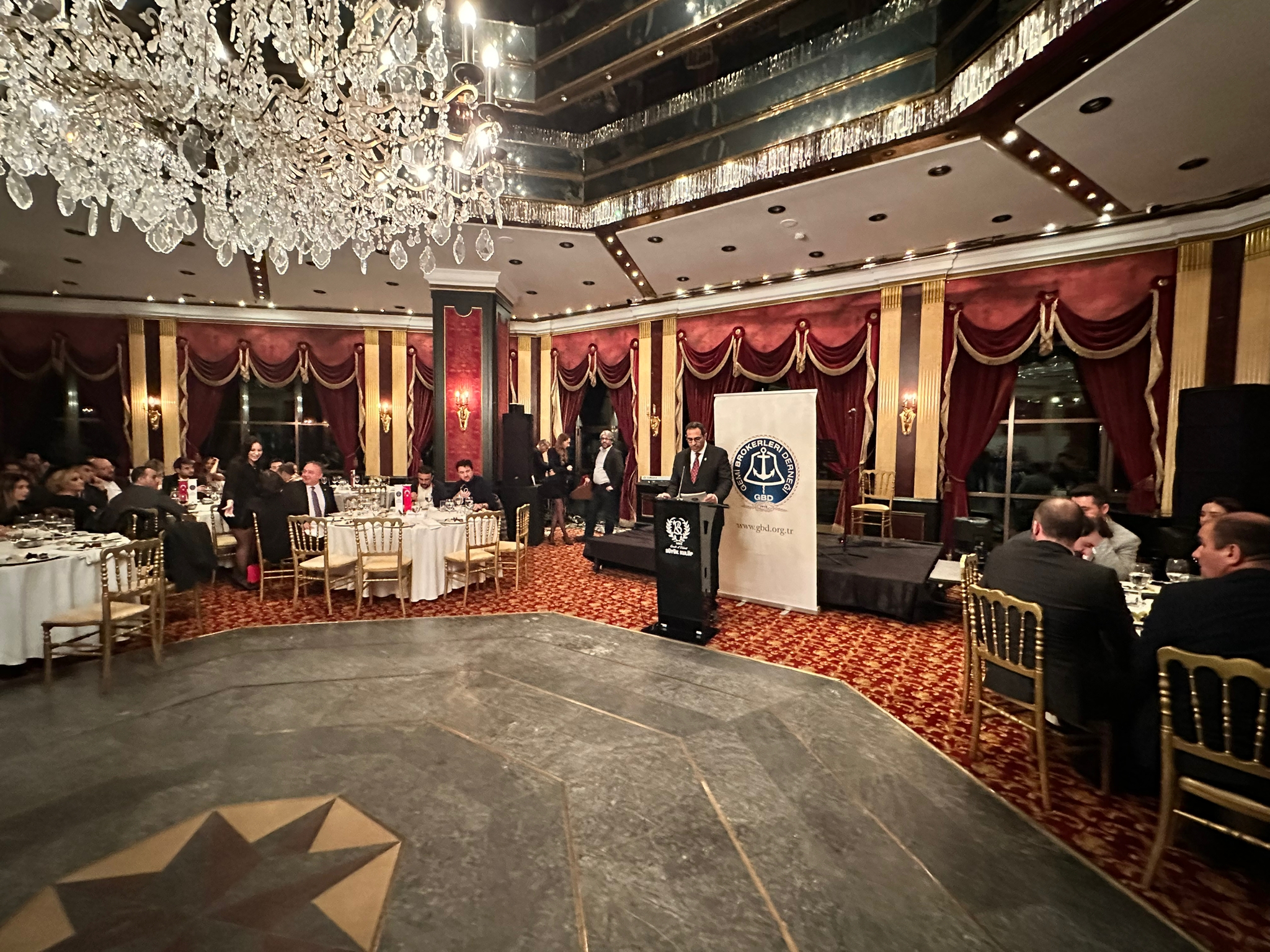 Denizcilik sektörünün buluştuğu yeni yıl kutlama yemeğinde Gemi Brokerleri Derneği YK Başkanı İsmail Şahin ve ve İMEAK DTO Meclis Başkanı Başaran Bayrak birer konuşma yaptı.