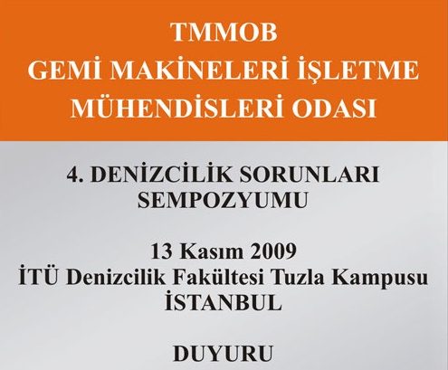 TMMOB Gemi Makineleri İşletme Mühendisleri ; 4. Denizcilik Sorunları Sempozyumu'nu düzenliyor. Sempozyum, 13 Kasım 2009 Tarihinde İTÜ Denizcilik Fakültesi Tuzla Kampusunda yapılacak.