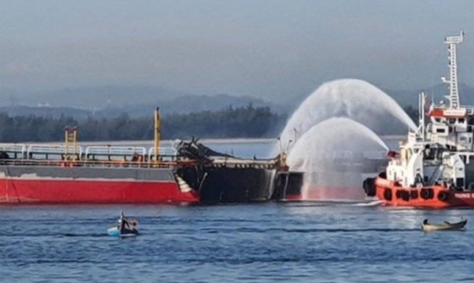 Patlamadan sonra çıkan yangın arama kurtarma ekipleri ve römorkörler tarafından yaklaşık bir saat içinde söndürüldü.