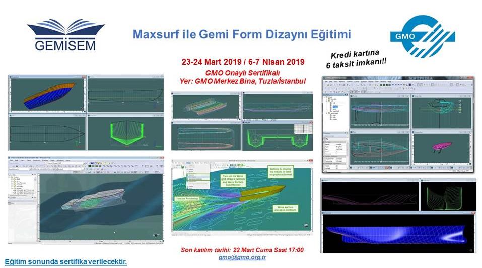 GEMİSEM " Maxsurf ile Gemi Form Dizaynı Eğitimi " 23-24 Mart 2019 / 6-7 Nisan 2019 tarihlerinde Tuzla oda merkezimizde düzenlenecektir.
