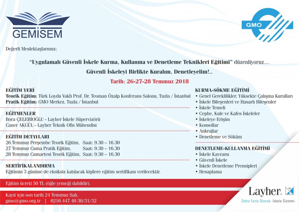 GEMİSEM tarafından "Uygulamalı Güvenli İskele Kurma, Kullanma ve Denetleme Teknikleri Eğitimi" düzenleniyor.
