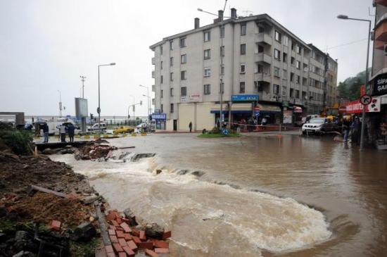 Doğu Karadeniz Bölgesi’nin sahil kesiminde bir haftadır etkisini gösteren yağmur, 5 günlük aranın ardından Giresun’u yeniden vurdu. Önceki akşam saat 19.00’da başlayan ve sabaha kadar aralıklarla etkisini sürdüren şiddetli yağış nedeniyle kentin ana arterleri trafiğe kapandı. Kentte yüzlerce dükkan ve konutun alt katlarını su basarken, şehrin doğu yakasındaki Aksu, Boğacık ve Sütlaç dereleri taştı. Aksu deresinin taşması sonucu yer yer heyelanların meydana geldiği Giresun-Sivas karayolu ulaşıma kapandı.