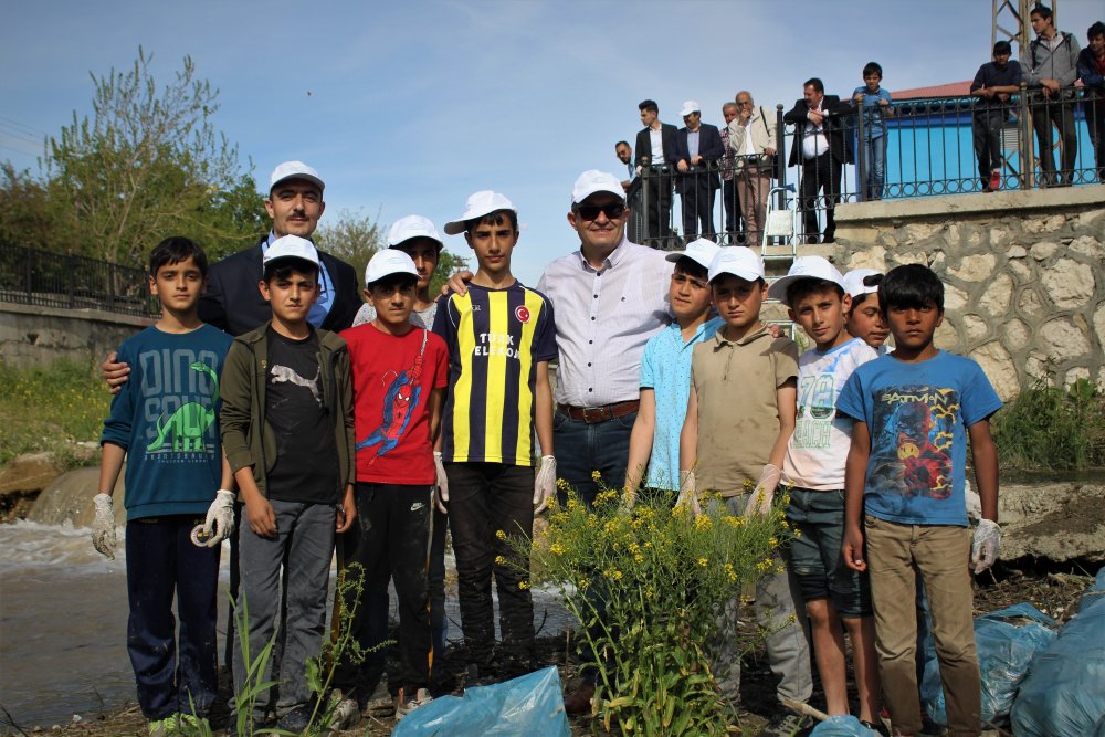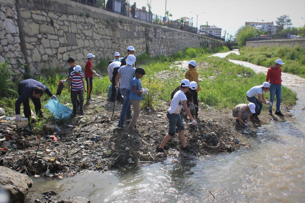 Van Ticaret ve Sanayi Odası (Van TSO) öncülüğünde bir araya gelen çocuklar, şehir merkezinden geçen Akköprü Deresi’ne doğru göç eden inci kefallerinin önündeki çöpleri temizledi.