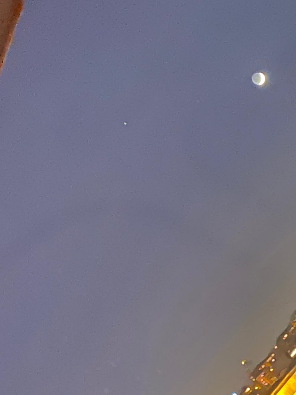 11 ayın sultanı Ramazan ayının ikinci gününde gökyüzünde hilal şeklindeki ay ile parlayan yıldızın muhteşem görüntüsü kameraya yansıdı
