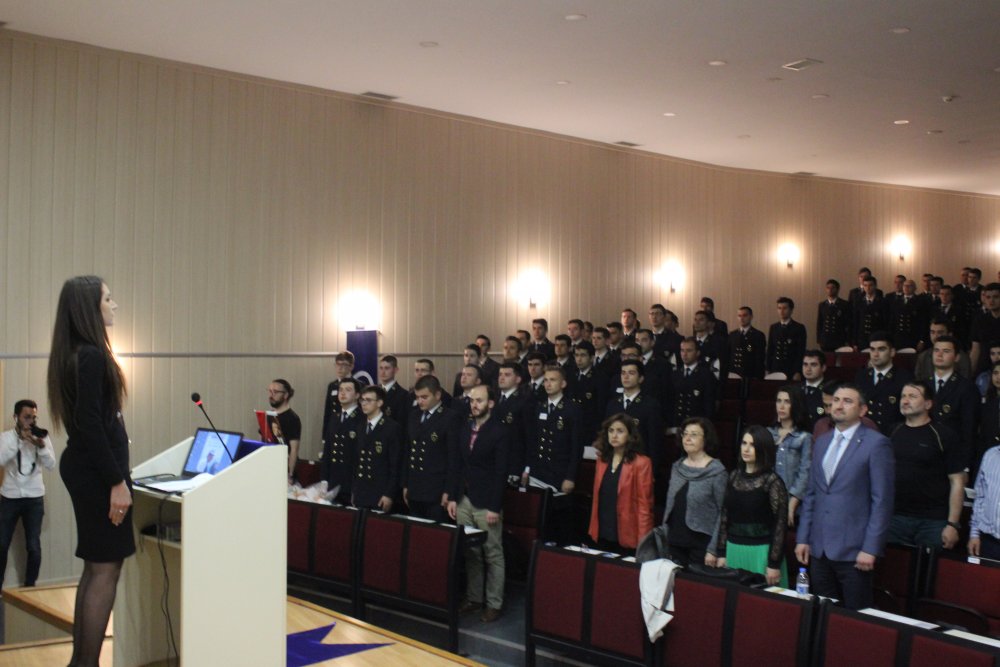 Deniz Ulaştırma İşletme Mühendisliği, Uluslararası İlişkiler ve Hukuk Bölümlerinden çok sayıda öğrencinin, çeşitli branşlardan akademisyenlerin ve konukların yer aldığı salonda Montrö Boğazlar Sözleşmesi hakkındaki bilgilendirmeler Avukat Sevin Özaydın tarafından yapıldı.