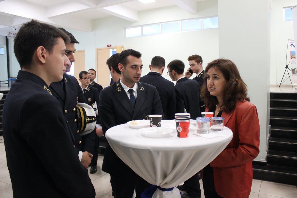 AYBAY Ailesi temsilcilerinin konuşmaları sonrasında, ev sahibi Dekan Prof.Dr. Metin Berber tarafından konuşmacı ve katılımcılara teşekkür edilerek plaket takdimi gerçekleştirilirken, Deniz Ulaştırma İşletme Mühendisliği Bölümü öğrenci temsilcileri Berke Kurnaz ve Yiğit Aksu çiçek takdiminde bulundu.