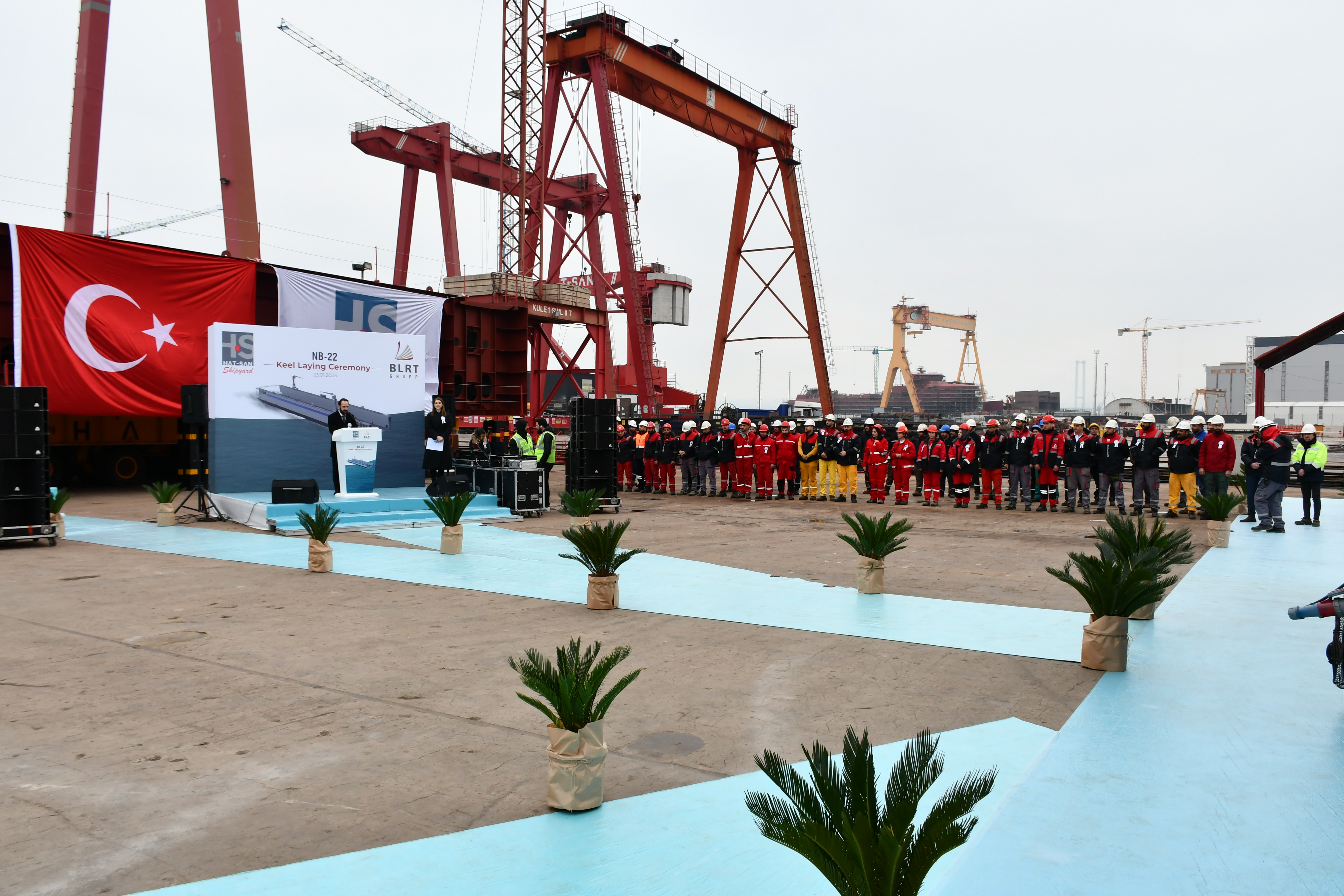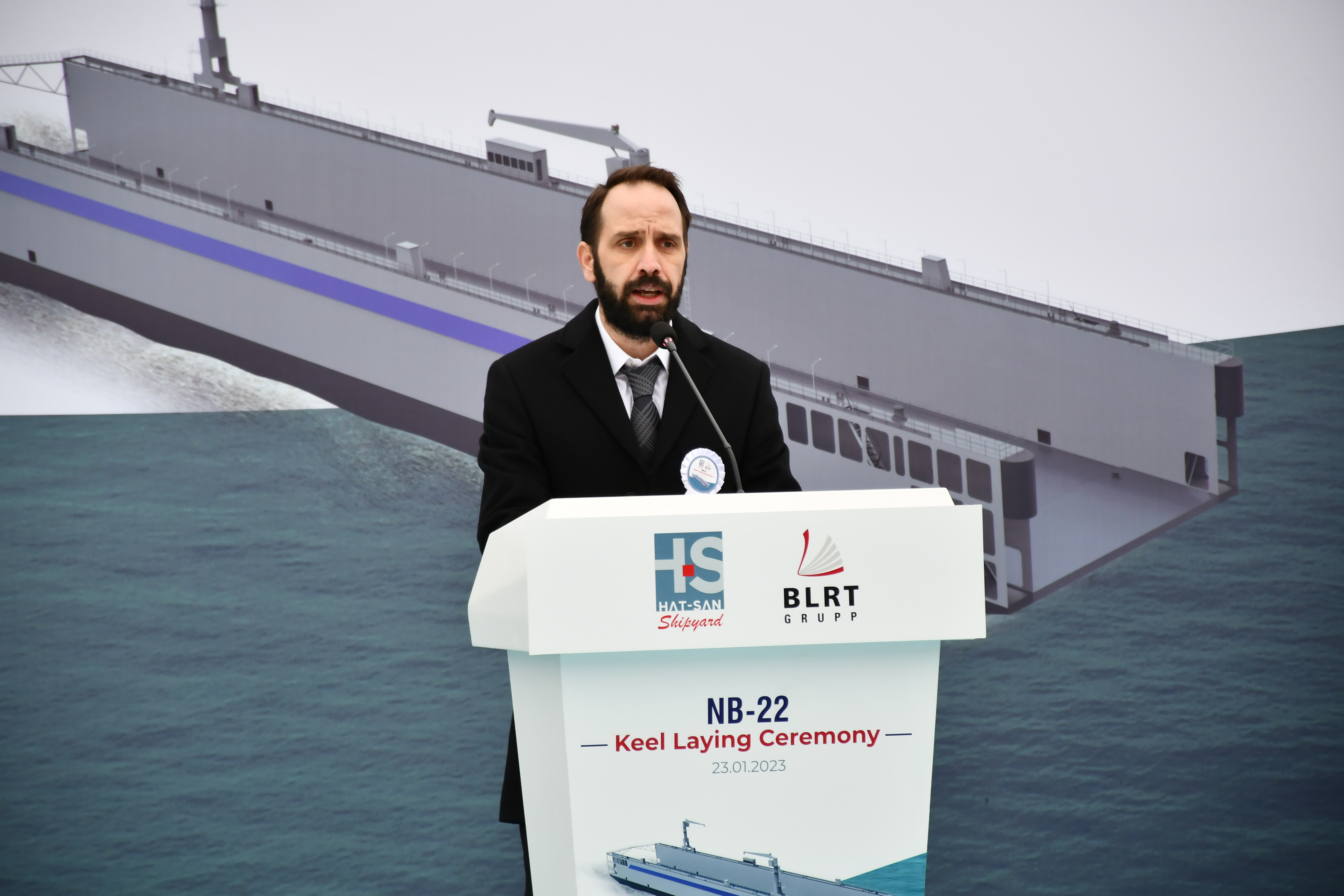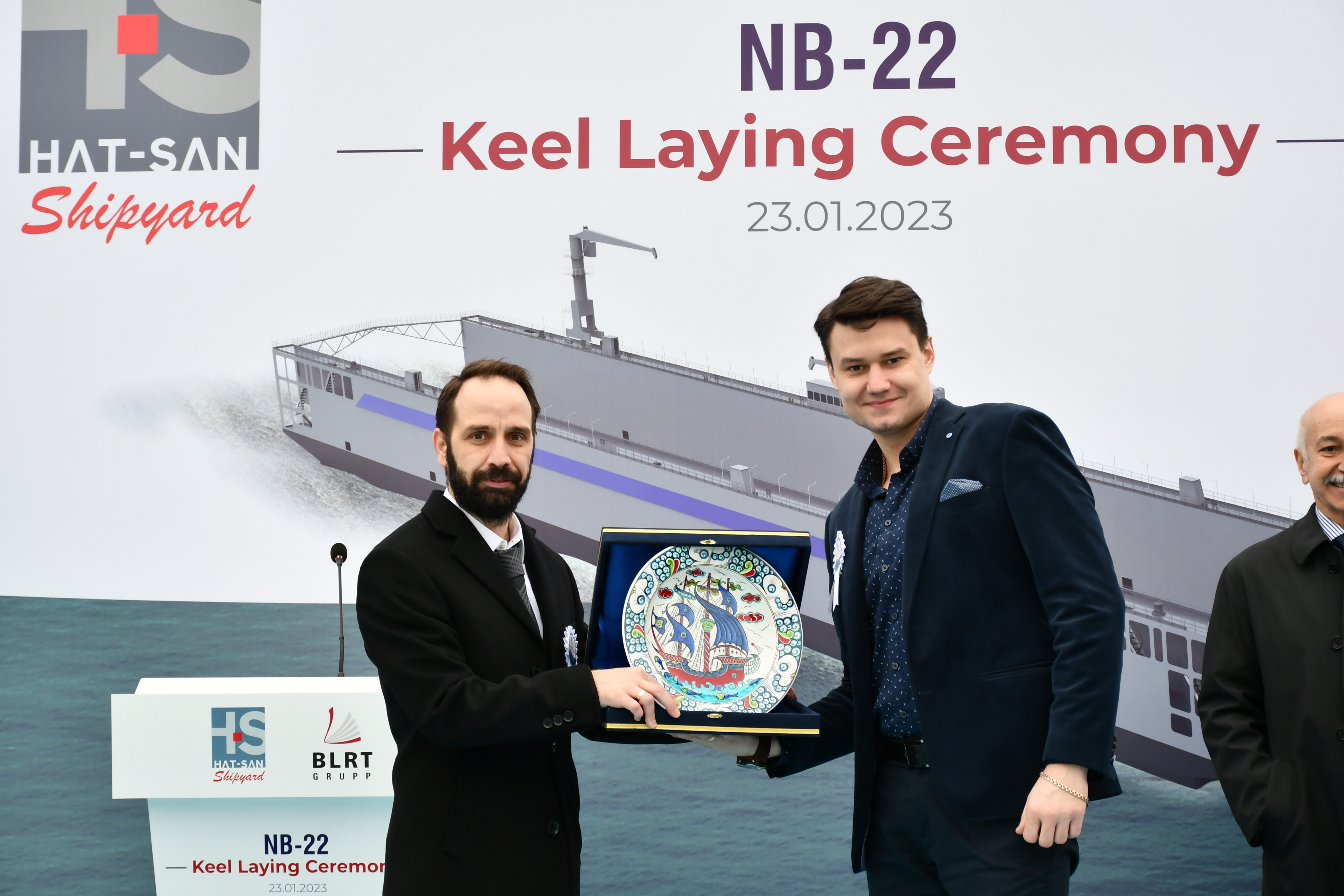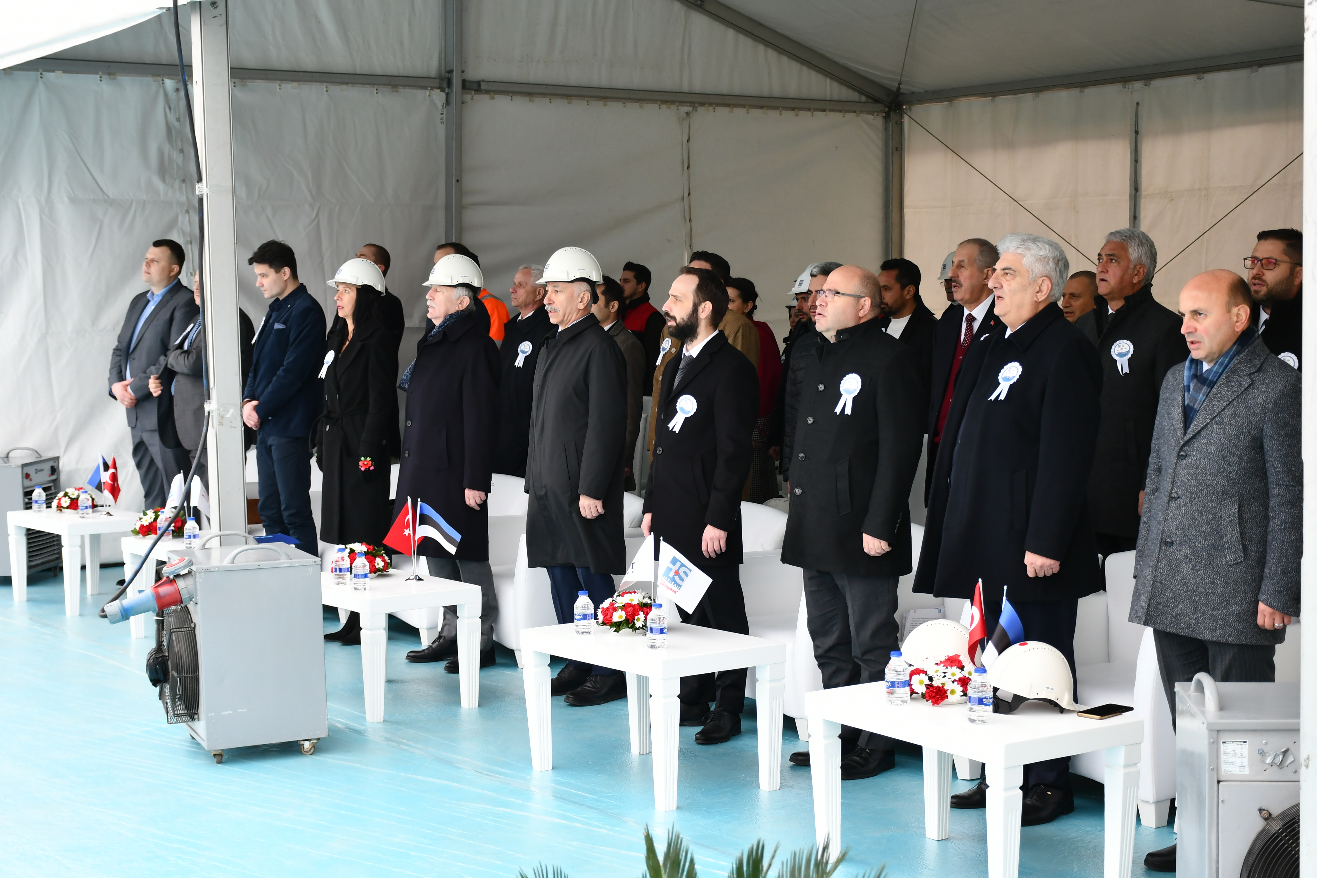 Hat-San Yönetim Kurulu Mustafa Pepe’nin konuşmasının ardından Estonya’nın Türkiye Büyükelçisi Annely Kolk ve Ulaştırma ve Altyapı Bakanlığı Bakan Yardımcısı Selim Dursun da törende günün önemine dair konuşma yaptı. Protokol konuşmalarından sonra NB 22’nin ilk omurga kaynağı yapıldı.