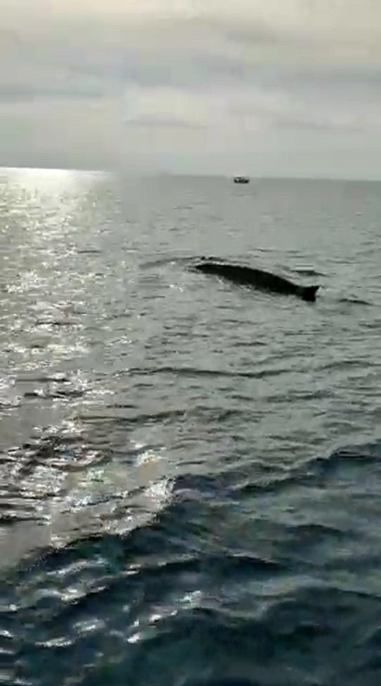 Hatay'ın Arsuz ilçesi açıklarında 2 uzun balina amatör balıkçılar tarafından görüntülendi.