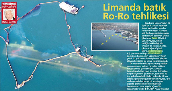 Bandırma Limanı çıkışında 14 Eylül 2008 tarihinde saat 23.00'te hatalı yükleme sonucu içersinde 100'den fazla mürettebat ve yolcu ile 73'ü kamyon olmak üzere 75 aracın bulunduğu ‘Hayat-N' adlı Ro-Ro gemisi battı. Özer Erdoğan, Necati Kalın, Murat Karaca ve Şafki Gönüllü'nün hayatını yitirdiği kazada, Yahya Özoğlu'nun cesedi bulunamadı. Yapılan bilirkişi incelemesinde 8 bin 550 grostonluk geminin yüzdürülemeyeceği anlaşılınca sökülmesine karar verildi. ‘Hayat N' isimli Ro Ro'nun parçalara bölünüp içersinde kalan 40 kamyonun çıkartılması için çalışmalar bugün devam etti. Gemi gövdesinden çıkartılan dev bir parçadan sonra Yahya Özoğlu’nun da cesedine ulaşıldı.