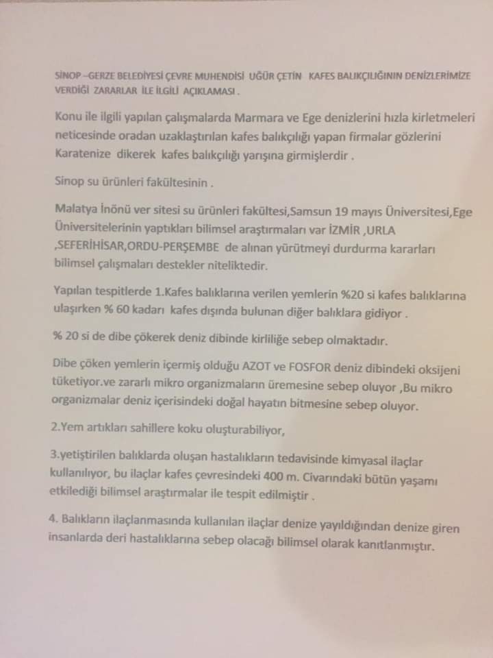 Bu durum üzerine İlgili kurum temsilcileri ile muhtarlar kafes balıkçılığının istenmediği doğrultusunda tutanak tutarak imza altına aldılar.
