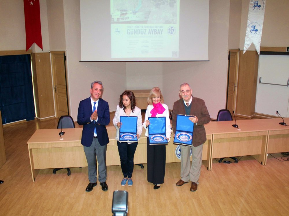 Aybay ailesinden Gündüz Aybay’ın eşi Meral Aybay, kardeşi Prof. Dr. Rona Aybay ve eşinin, Aybay ailesi sevenleri ve dostlarının katıldığı anma toplantısına ayrıca İMEAK Deniz Ticaret Odası İzmir Şubesi Meclis Başkanı Kenan Yalavaç, İMEAK Deniz Ticaret Odası Aliağa Şubesi Yönetim Kurulu Başkan Yardımcısı Ufuk Yıldırım, İMEAK Deniz Ticaret Odası Aliağa Şubesi Müdürü Ahmet Orçun Tuncer, Dokuz Eylül Üniversitesi Denizcilik Fakültesi kurucu dekanı Prof.Dr. A. Güldem Cerit, akademisyenler ve öğrenciler katılmıştır. Denizlerimizin Hukukçu kaptanı Gündüz Aybay: Türk Boğazlarına Adanmış Bir Ömür adlı anma toplantısı Dokuz Eylül Üniversitesi Denizcilik Fakültesi Dekanı Prof. Dr. D. Ali Deveci’nin konuşmaları ile başladı. Prof.Dr. D. Ali Deveci konuşmasında, Gündüz Aybay’ın Türk boğazları ile ilgili ülkemizin hak ve menfaatlerinin savunulmasında daima liderlik yaptığını, Türk Boğazları Deniz Trafik Düzeni Tüzüğünün hem iç hukukta hem de Uluslararası Denizcilik Örgütü tarafından kabul edilmesinde aktif rol oynayarak öncülük ettiğini belirtmiştir. Denizcilik ve deniz hukuku araştırmacısı ve eğitmeni olarak, Gündüz Aybay’ın denizcilikle çok farklı kurumlarda lisans ve lisansüstü dersler vererek çok az sayıda yayının bulunduğu bir alanda çok sayıda özgün kitap ve makaleler ürettiğini, kurduğu vakıf aracılığıyla deniz kökenli öğretim üyelerine sağlamış olduğu burs olanaklarıyla denizci akademisyen yetiştirilmesine destek olduğunu, bu akademisyenlerden bazılarının profesörlük unvanlarını alarak DEU Denizcilik Fakültesi’nde de çalışmakta olduklarını belirtmiştir. Prof. Dr. D. Ali Deveci anma toplantısının ve belgesel film gösteriminin denizci öğrencilerin kariyerlerinde kaptan ve hukukçu Gündüz Aybay’ı rol model alarak iyi birer denizci olma yolunda motivasyonlarının arttıracağına inancının tam olduğunu vurgulamıştır.