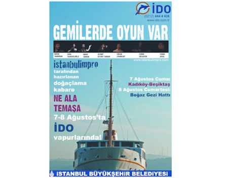 İstanbul'un deniz ulaşımına yaptığı yatırımların yanı sıra kentin kültür sanat yaşamına desteğini sürdüren İDO, geçen yıl ilkini gerçekleştirdiği tiyatro etkinliklerini bu yıl da sürdürüyor. İDO, 7 - 8 Ağustos tarihlerinde İstanbulimpro tarafından sahnelenecek “Ne Ala Temaşa” adlı doğaçlama oyunla tiyatroyu denize taşıyor.