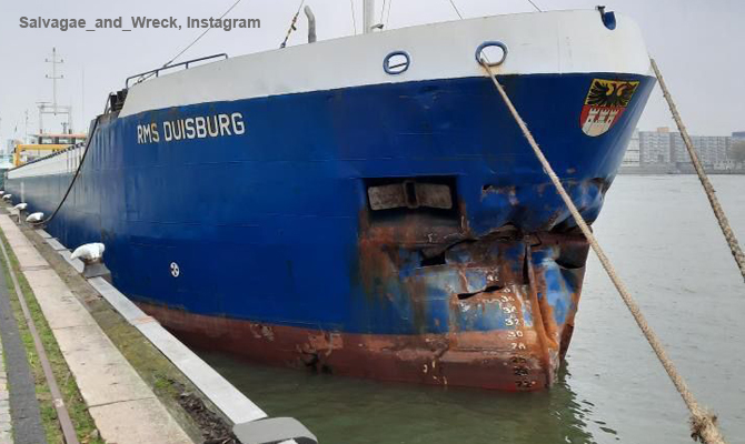 Her iki geminin de pruva kısmı ağır hasar alırker 1999 inşa Liberya bayraklı RMS DUISBURG'un Rotterdam'a ulaştığı bilgisi paylaşıldı.