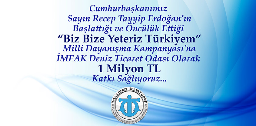 İstanbul ve Marmara, Ege, Akdeniz, Karadeniz Bölgeleri (İMEAK) Deniz Ticaret Odası, Cumhurbaşkanı Recep Tayyip Erdoğan'ın başlattığı "Biz Bize Yeteriz Türkiyem" Milli Dayanışma Kampanyası'na 1 milyon TL destek verdi.