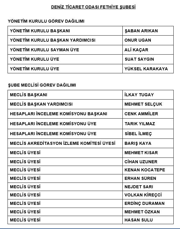 İMEAK Deniz Ticaret Odası Fethiye Şubesinde 5 kişilik yeni yönetim ise şu şekilde oluşmuştur;
