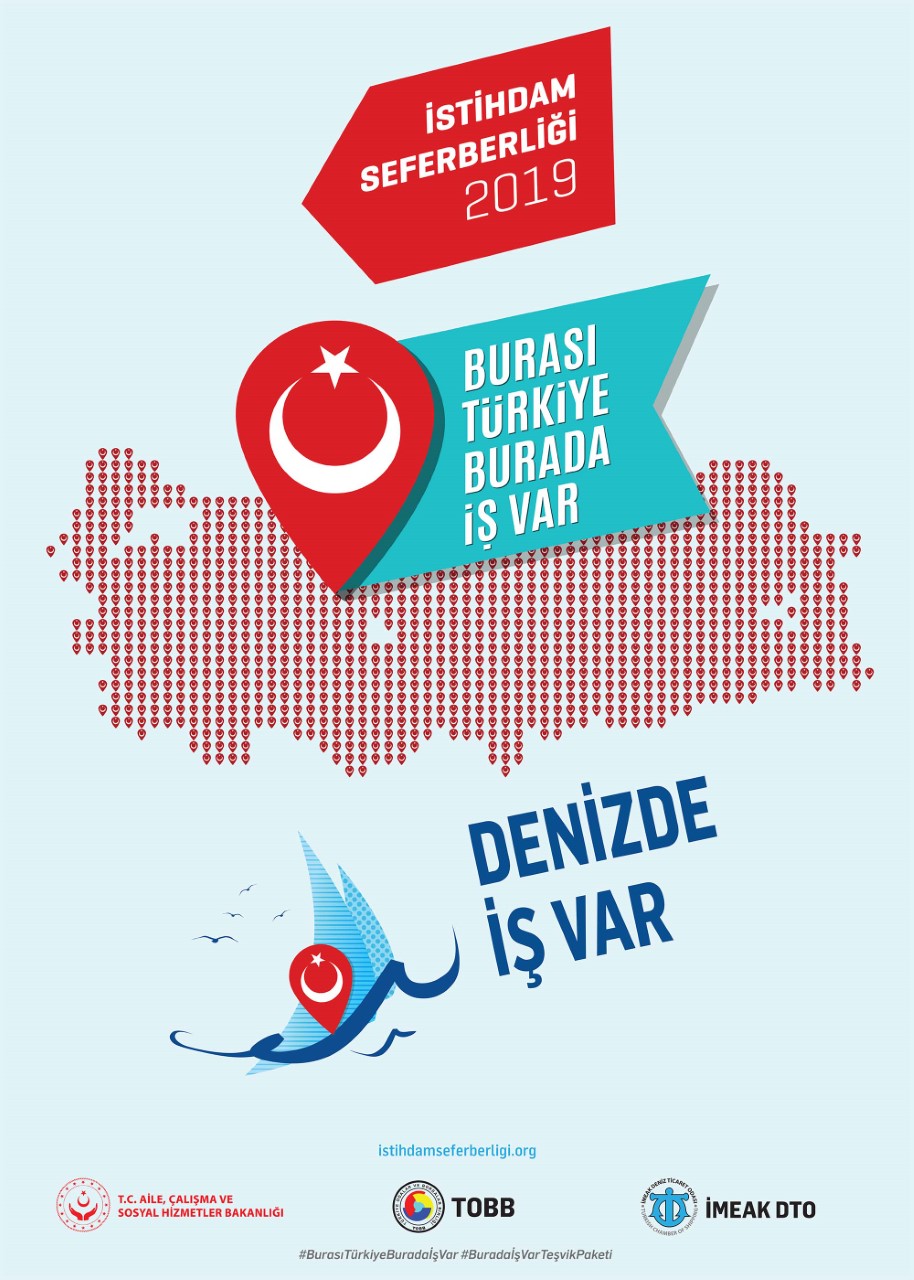 TOBB Başkanı Rifat Hisarcıklıoğlu ev sahipliğinde Hazine ve Maliye Bakanı, Aile, Çalışma ve Sosyal Hizmetler Bakanı ile oda ve borsa başkanları ve TOBB Sektör Meclisi Başkanlarının katılımıyla 25 Şubat’ta “Burası Türkiye Burada İş Var” sloganıyla İstihdam Seferberliği 2019 kampanyası başlatıldığını hatırlatan Öztürk, Deniz Ticaret Odası İzmir Şubesi olarak, Denizde İş Var diyerek bu kampanyaya dahil olduklarını söyledi.