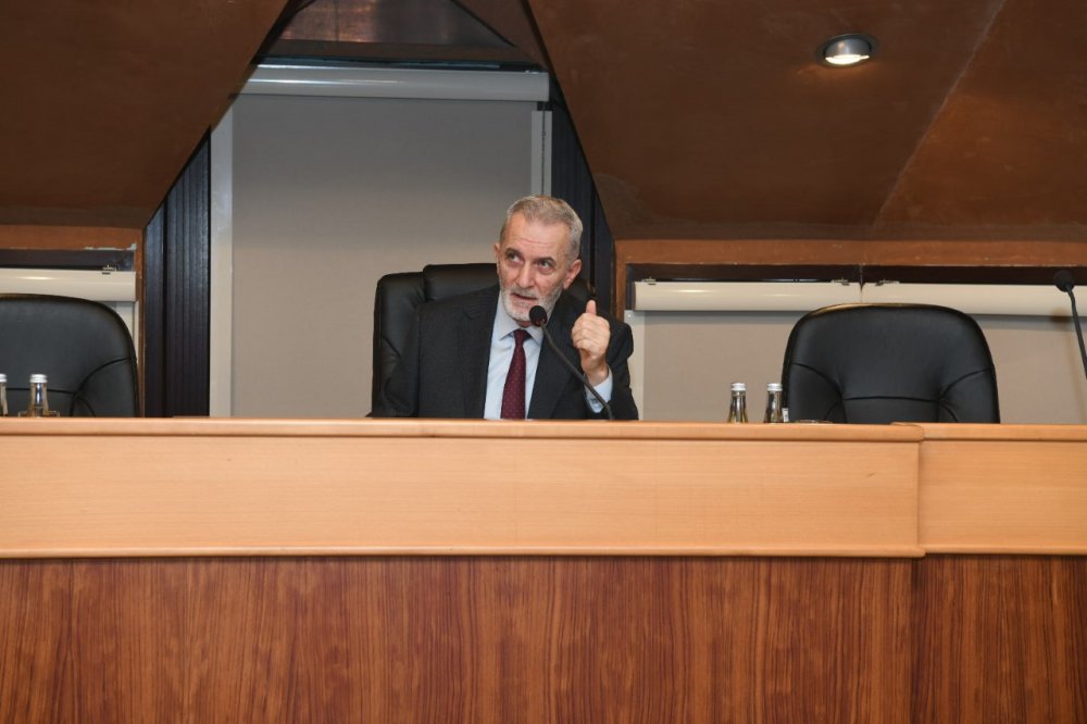 Tamer Kıran’ın konuşmasının ardından Denizcilik Envanter çalışmaları ile ilgili olarak Denizcilik Envanter Komisyonu Başkanı Adem Kocadağ ve Prof. Dr. Ruhi Kaykayoğlu, İMEAK Deniz Ticaret Odası Meclis Üyelerini bilgilendirdi.