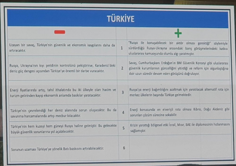 Geldiğimiz noktada iki ülke arasındaki savaş nedeniyle bu ülkelerin Azak Denizi limanları, Karadeniz limanları ve denizlerdeki durumu şu an için belirsizliğini korumaktadır. Bölgede deniz ticaretinin sürdürülmesi ve gemilerin can, çevre ve mal emniyetinin sağlanması için tüm tedbirlerin ivedilikle hayata geçirilmesi büyük önem arz etmektedir. Karadeniz çanağında deniz ticareti veya ulaştırması faaliyetleriyle iştigal eden üyelerimizin yaşadıkları endişeler nedeniyle Karadeniz’de faaliyetlerini yapma isteklerinin her geçen gün azaldığını da gözlemlemekteyiz. 4 Nisan itibarıyla Ukrayna’nın muhtelif limanlarındaki Türk gemi sahipleri veya işletenlerin kontrolündeki gemi sayısı 22 iken, limanlarımızdaki Rusya federasyonu bayraklı gemilerin sayısı hatırı sayılır ölçüde artmıştır. Karadeniz’deki durum nedeniyle Türk sahipli gemi filomuzun bölgedeki ticari faaliyetlerden çekilme düşüncesinde olduğu görülmektedir. Bu durum öncelikle güvenlik endişesi, sigorta teminatları ve sonunda gemi sahibi veya işletmecisi Türk firmaların gelebilecek yaptırımlardan duyduğu çekincelerden kaynaklanmaktadır.