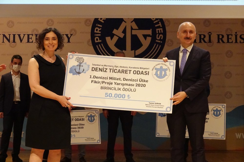 Adil Karaismailoğlu’nun konuşmasının ardından gerçekleşen ödül töreninde İMEAK Deniz Ticaret Odası olarak ülkenin kalkınma hedeflerine uygun ilerleme gayreti içinde “Denizci Millet, Denizci Ülke” adıyla düzenlenen yarışmanın ödülleri sahiplerini buldu.