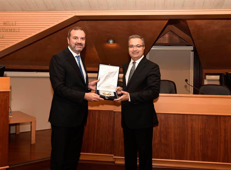 Toplantının sonunda İMEAK Deniz Ticaret Odası Yönetim Kurulu Başkanı Tamer Kıran, Sanayi ve Teknoloji Bakanlığı Teşvik Uygulama ve Yabancı Sermaye Genel Müdürlüğü Genel Müdür Vekili Dr. Mehmet Yurdal Şahin'e plaket takdim etti.