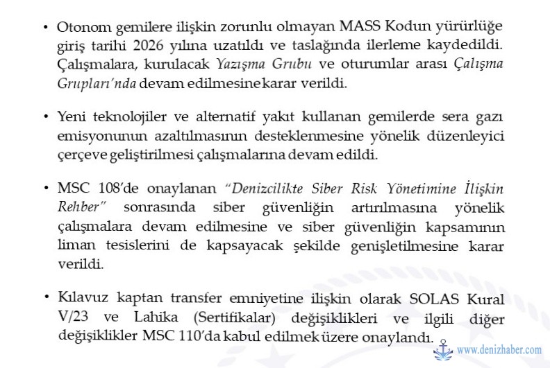 IMO Deniz Emniyeti Komitesi (MSC) 109. Dönem Toplantısı, 02-06 Aralık 2024 tarihleri arasında Londra’da gerçekleştirildi.